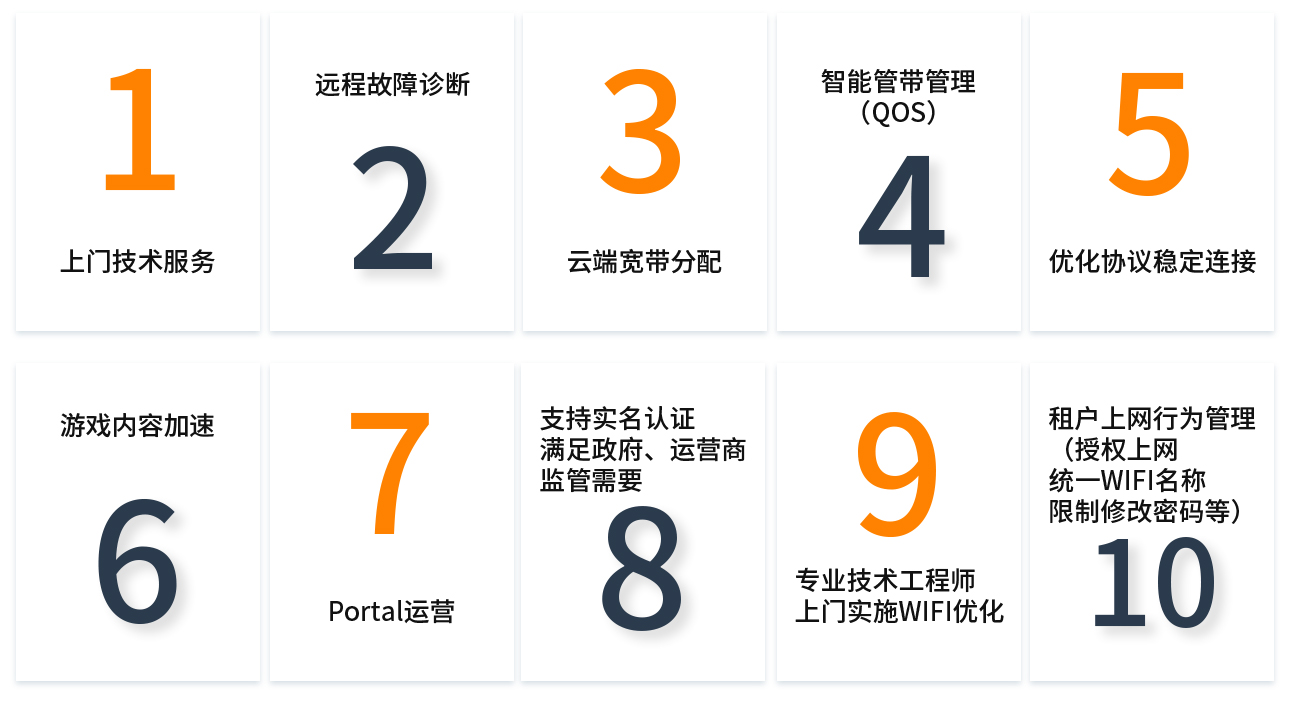為公寓管理者提供寬帶及網絡設備的設計選型代購、安裝協調、WIFI優化、續費、撤機、故障維修、投訴處理、數據管理等寬帶全托管服務;